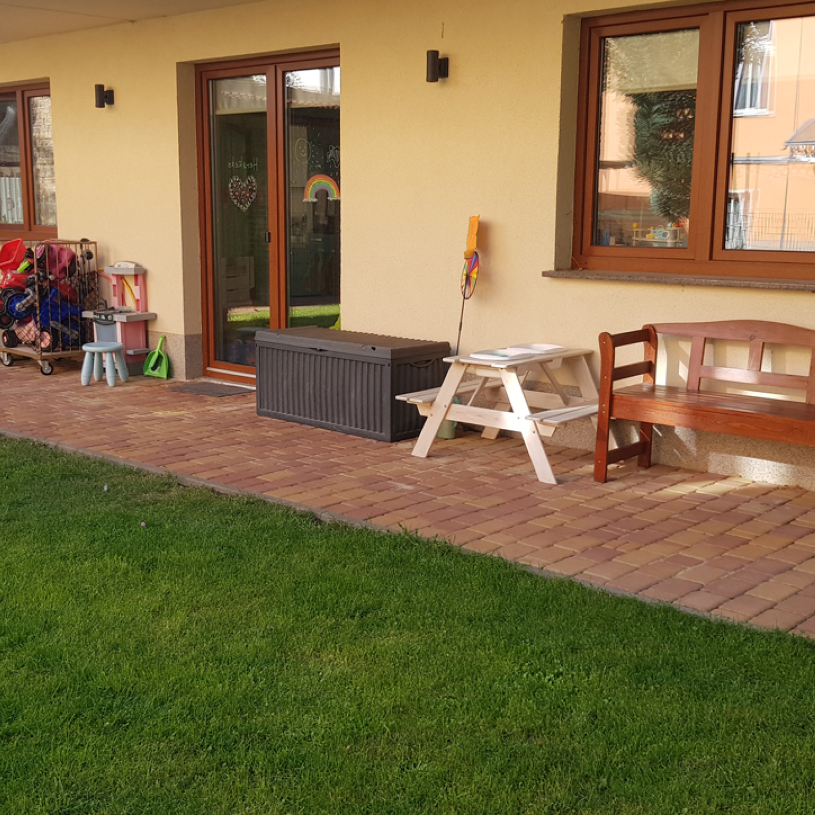 Der Garten ist komplett eingezäunt und gesichert, sodass jedes Kind sich nach seinen Wünschen bewegen kann.