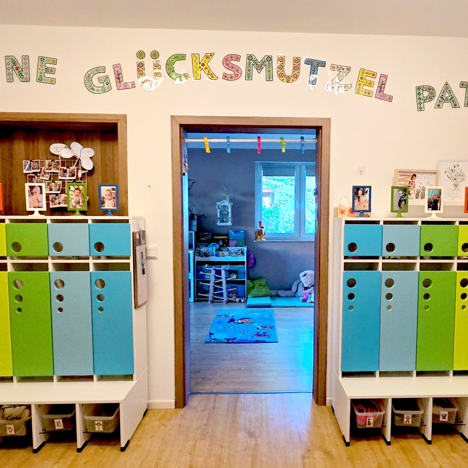 In unserer Garderobe hat jedes Kind seinen Platz.