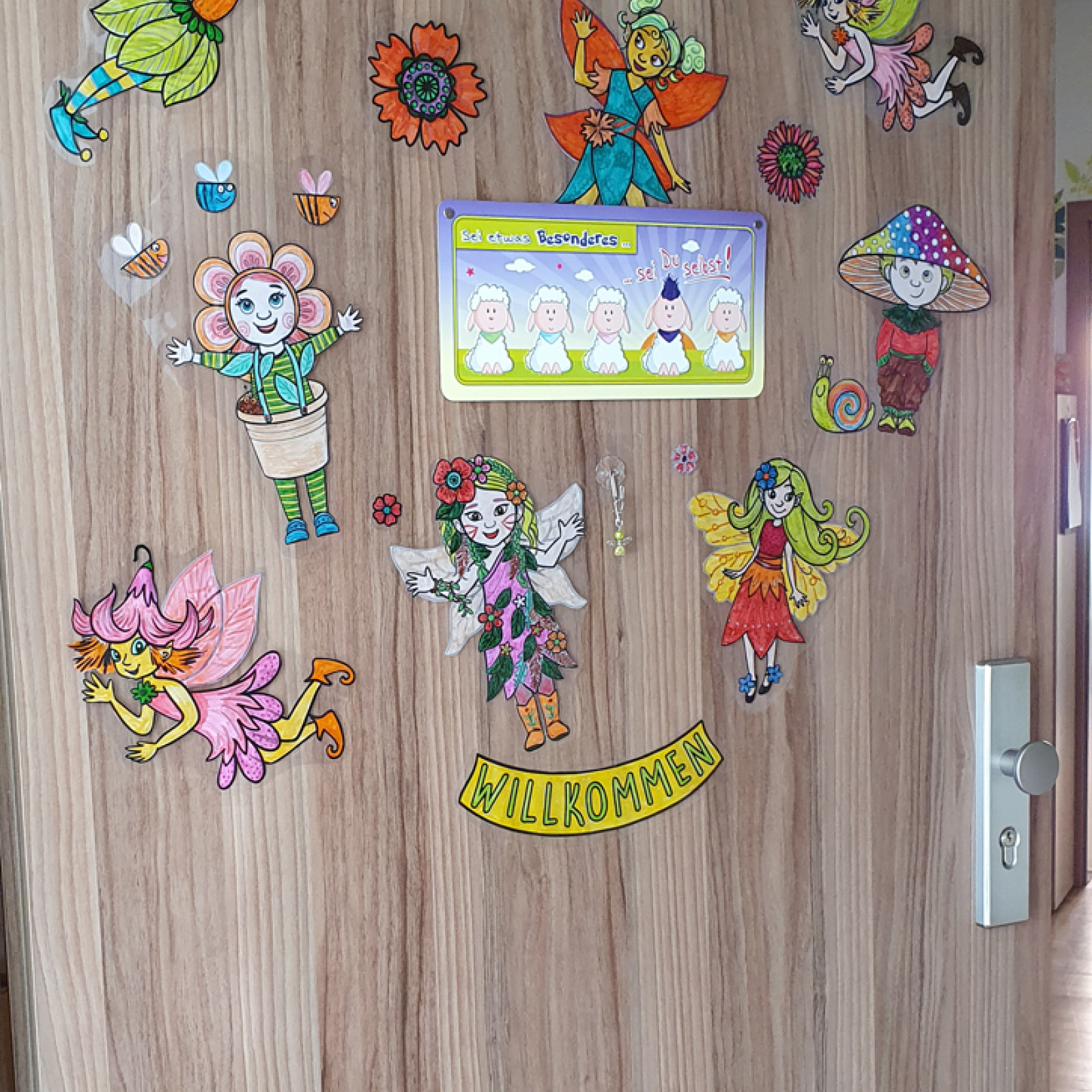 An unsere Eingangstür werden die Kinder mit ihren Erkennungsbildern begrüßt.